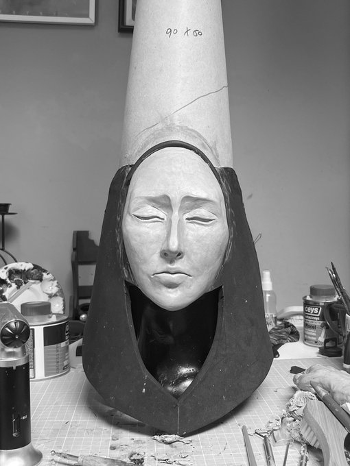 Ya casi tengo la cara de Crisanta 😊Realmente sólo se verá nariz y boca, el resto lo tapan las manos, pero quería definir un poco los ojos por lo que se pueda ver entre los dedos #Blasphemous