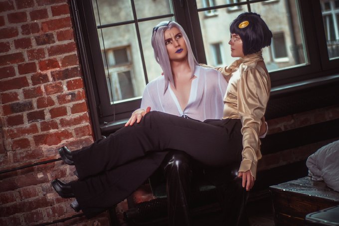 Happy bday Bruno! (Ye it looks more like Abba is getting a treat but shhhh xD) Bruno 1.0: me Bruno 2.0: @Eik1_chi Leone: @pandakaicos #bruabba #brunobucciarati #leoneabbacchio #cosplay