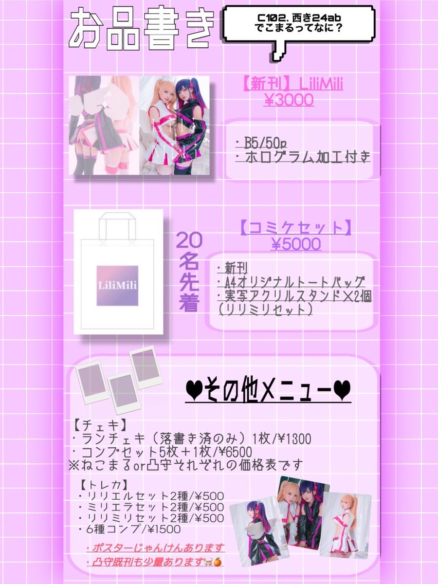 お待たせしました #C102お品書き です! 8/13(日)西2こ20ab で新刊2冊ご用意させて頂きます! おかきレシピ本に8人の飯様子と 今回は内容もページ数も過去1詰まったラインナップな上うちわを追加してみました!(数に限りあり) 是非遊びに来てください!お待ちしております! #C102 twitter.com/i/web/status/1…