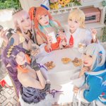 Let’s party! 🎉 🎈 Mori Calliope @missolivie Takanashi Kiara @lam_luffy Ninomae Ina'nis @silverxhere Gawr Gura @ kamiかみ Watson Amelia @misha_shia Photo by jko@撮影バカ - #HololiveEN #HoloMyth #callioP #MoriCalliope #calliolive #callillust #HololiveCosplay #ホロライブ