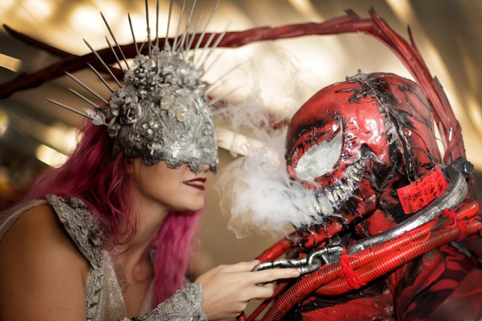 We are.... memes. 📷 kevhino #VenomMovie #venomcosplay #carnagecosplay #rebirthmxd #ladyvenom #venomsymbiote #carnage #nycc2021 #nycc21