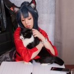 When you’re trying to work, but your 16 year old cat wants to help 🤣🤣🤣 #catownerproblems #cosplay #cosplayer #cats