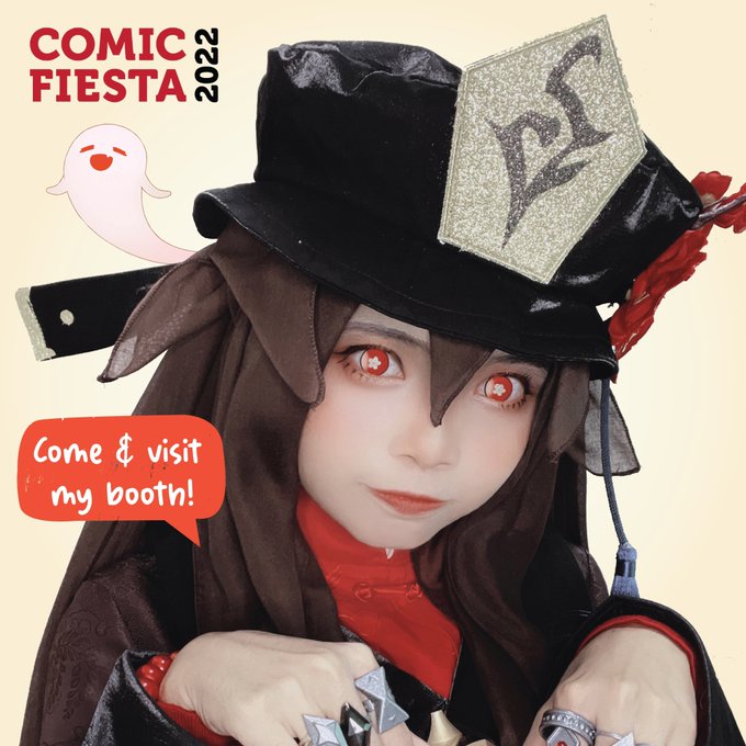 Hello, everyone! Come & visit our SweetyCon’s booth no C165 this weekend in @comicfiesta 2022! ✨ #comicfiesta #comicfiesta2022 #cf2022 #cosplay #cosplayer #cosplaygirl #sweetycon #hijabcosplay #cosplayhijab #hijabcosplayer #genshinimpact #hoyoverse #hutao