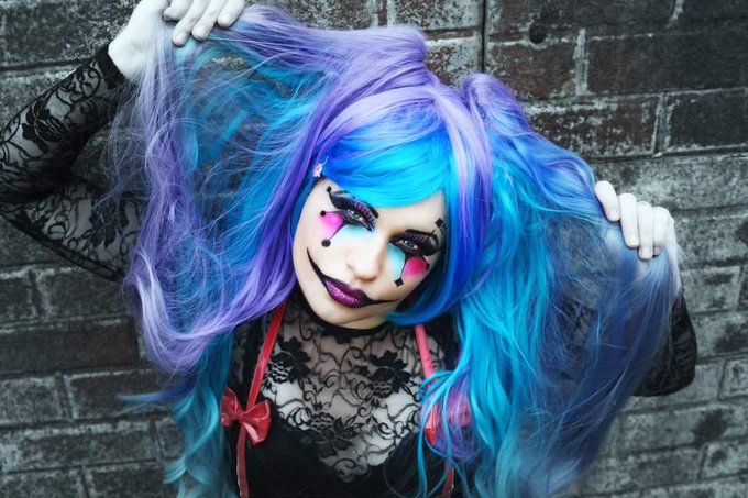 Pic from a photoshoot. I did the makeup all myself! #gothicgirl #gothic #gothfashion #alternativestyle #alternativegirl #cosplay #HarleyQuinn #clowngirl #crazy #bluehair
