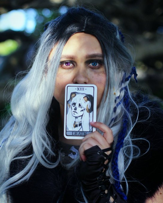 Hey yall??? I'm so gay and I love yasha so much.Thank you Ashley Johnson @TheVulcanSalute for giving us this beautiful character. Tarot card is from @AnnaDrawsStuff #criticalrole #criticalrolecosplay #themightynein #yashanydoorin #yashacosplay #cosplayer #cosplay #crc2