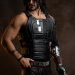 "🖕 Arasaka." - Johnny. Happy #CyberSunday Cosplay shot by me featuring my RL Johnny. Vest and arm handmade by us both. #Cyberpunk2077 #Cyberpunk2077cosplay #JohnnySilverhand #cyberpunkgame #cosplayrt #cosplay #JohnnySilverhandCosplay #JohnnySilverhandCosplayer #keanureeves