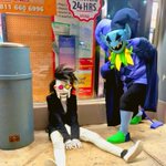 Got lots of pics. Me as Spamton @Milkfakerfake @SistarStarly as Noel and Kris. Met Susie and Ralsei but I don’t know if they have twt/socials #AnimeBoston23 #DELTARUNE #cosplay #animeboston