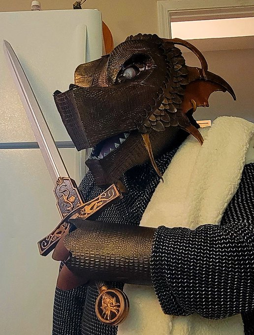 Thought I'd post this here my hard work for a redundant Cosplay/RP stream. My Dragonborn cleric. #dnd5e #dndart #theblackring #cosplayers #Dragonborn