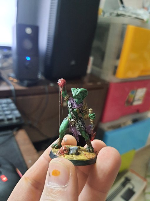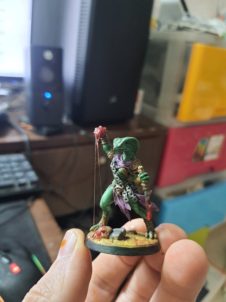 got the Yuan Ti priestess done! I'm really pleased with how the gore effects look and the wash did wonders too!#dungeonsanddragons #dnd5e #dndart #3Dprinting #ttrpg