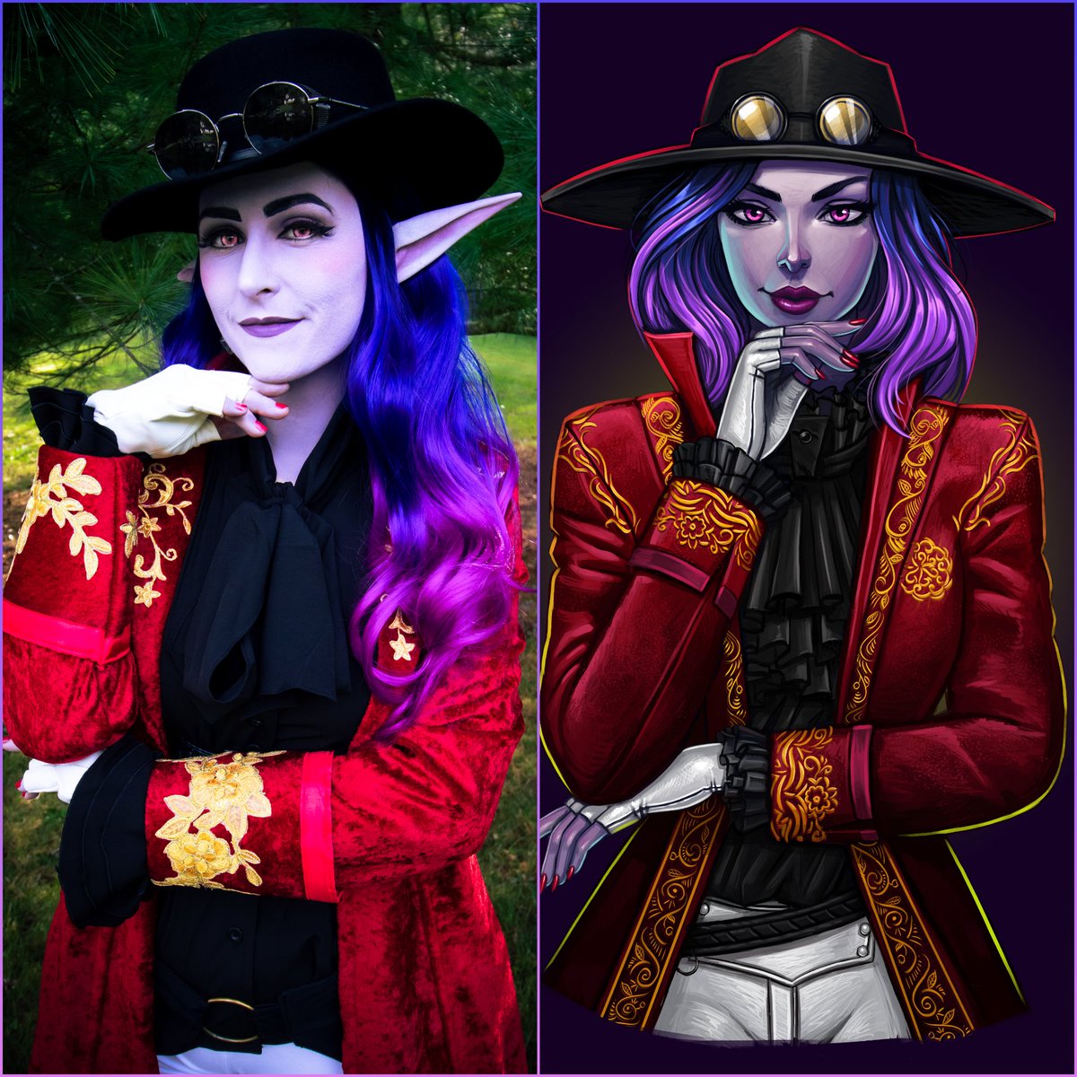 I love a good character vs cosplay moment 💋💜 📸: @karamelphotos 🎨: @GruberMihaela #originalcharacter #DnD #cosplay #DnDcharacter #dndart