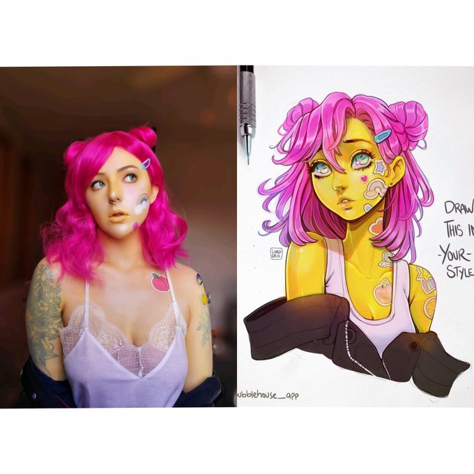 Sticker-lover 💛🌈 OG artwork done by @lord_gris for her #drawthisinyourstylechallenge in partnership with @bubblehouse_app ☺ #supportartist #supportart #digitalart #digitalartcosplay #cosplay #artrecreation #makeupart #cosplaymakeup #indiecosplay #cosplay #cosplayart #lordgris