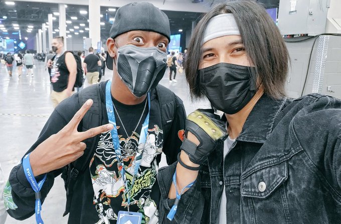 My man @BlackAcecosplay came thru with THE BEST nago Cosplay I've seen. Passing the torch to a new generation of cosplayers is a great feeling. #nagoryuki #leroysmith #evo2022 #cosplay