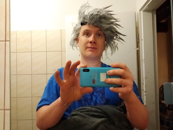 I can't believe I followed #ILombardia via @radsportmagazin and GCN while wearing this creeepy improvised cosplay on a ComicCon during a #cosplay contest. 🤣 #FantasyBasel Must be my weirdest/most exotic way to watch cycling ever.