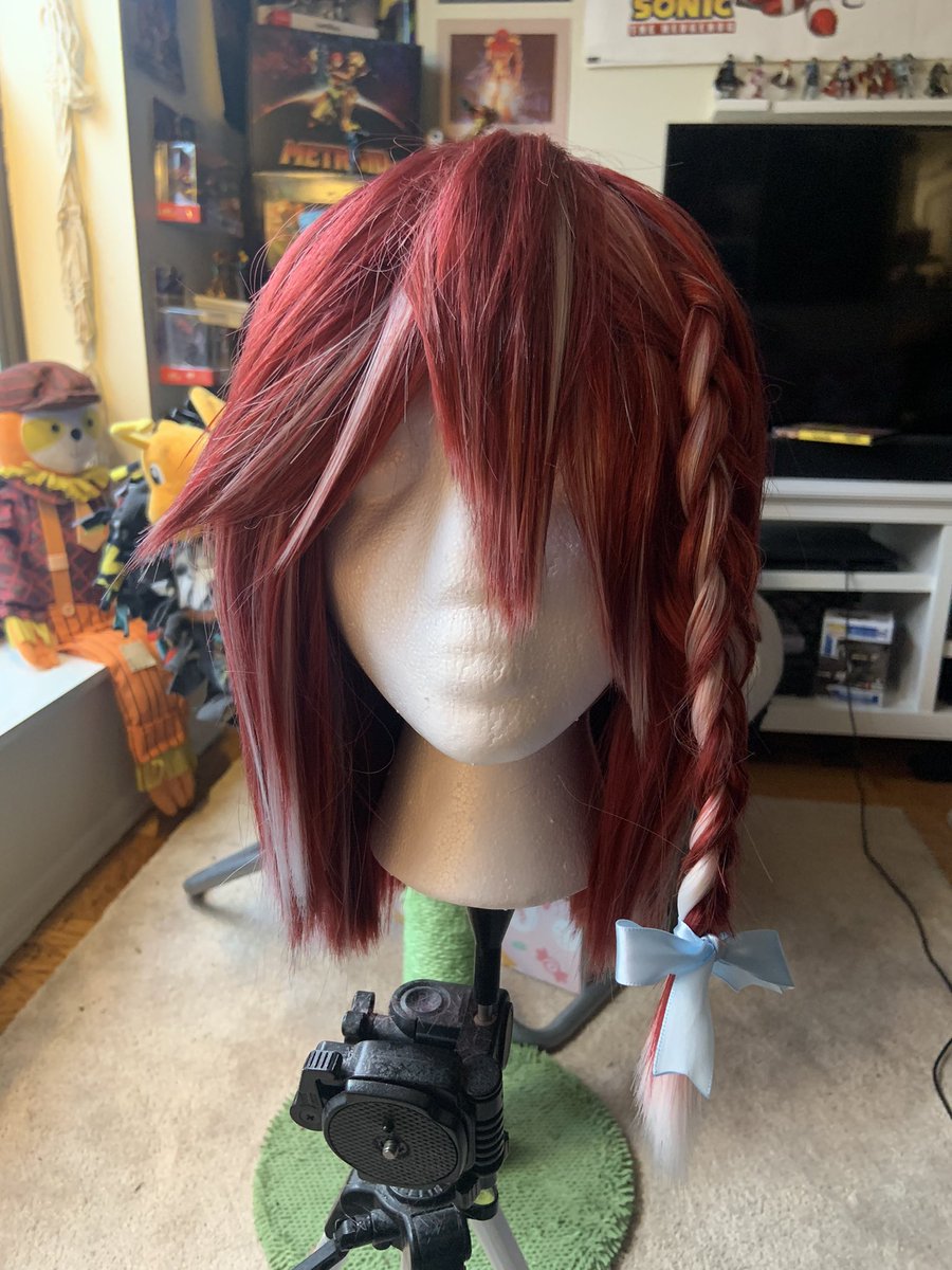 commission of @Magskcrp’s warrior of light complete! wig is @ArdaWigs magnum long in maroon (to match the ears they’re commissioning from another artist) and short wefts in pure white. #FFXIV #ffxivcommission #ffxivcosplay