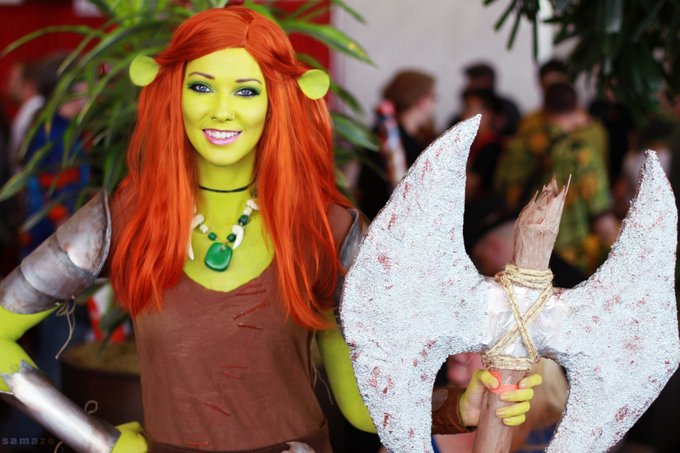 Character: Princess Fiona from #Shrek Model: @glitzybrite Venue: @fanexpodallas #cosplay #princess #fiona #princessfiona #tbt #bodypaint #redhair