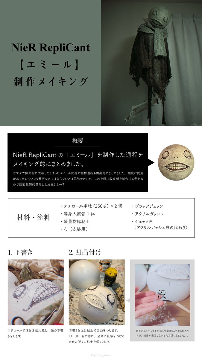ニーア(レプリカント)のエミールを作った際の過程をメイキング的にまとめてみました。 頭部だけならあまり難しい工程も無いので、ぜひ一家に一体エミールを… #gelus_making #gelus_cos