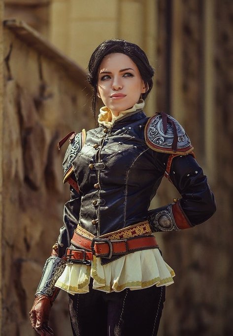 “So I'm not going to meet a tall dark stranger? I shall have to content myself with you, Geralt” Pc: @gabrielleeccard #thewitcher #yennefer #witchercosplay #Geralt #Witcher3 #cosplay