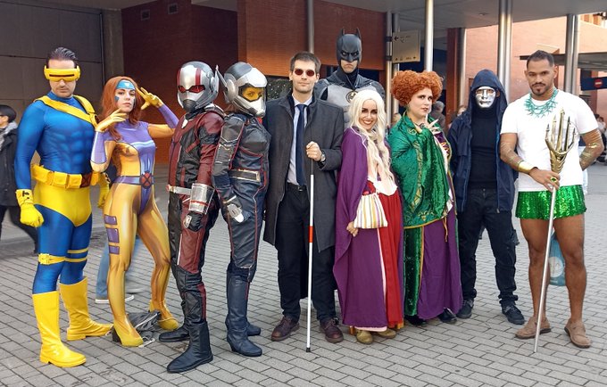 Salir fuera implicaba conocer gente, a varios #xmen, al #DoctorOConnor, #Deadpool, los conocidísimos héroes #GuardiansOfTheGalaxy, los intrépidos #AntManandtheWasp, a #Batman y más variantes de #Loki. ¡Foto grupal! #MadridComicPopUp #hocuspocus #Cosplay