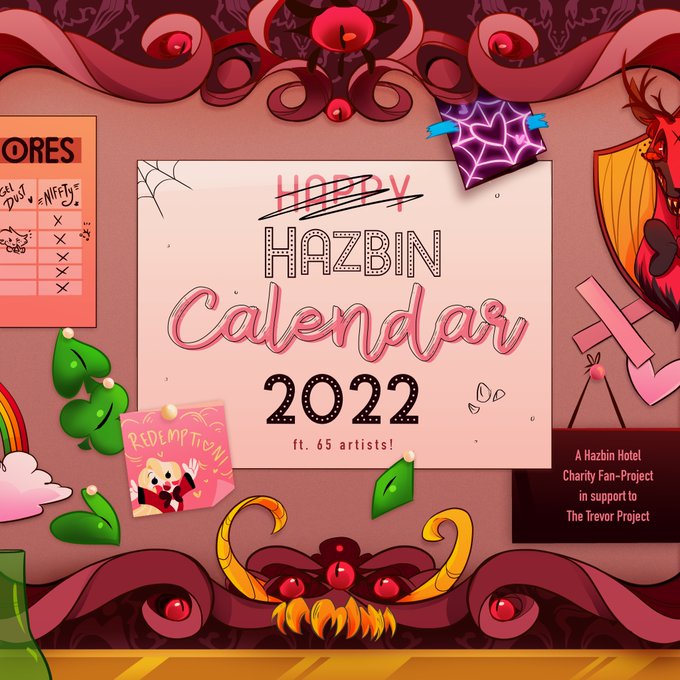 🚨Calendar Preorder Open Now🚨 It's finally time!!! Over 60 artists have come together to create an unofficial #HazbinHotel calendar for 2022 w/ all proceeds going to #TheTrevorProject! Sale runs through Nov. 13th! Link below and in bio! #Hazbin #Hazbinhotelfanart #hhfanmerch