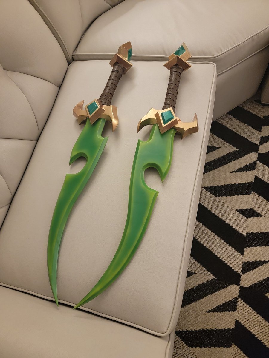 Valeera swords! So proud of these swords I made! They're 3d printed and airbrush painted. #hearthstone #cosplay