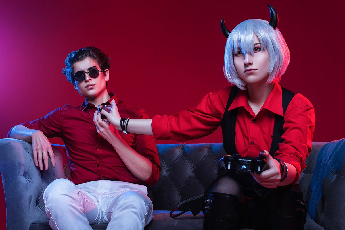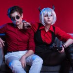 Ми з @buy_me_a_pug being iconic hell sisters 😎 Фотограф @ph_akane 💗 #helltakerfanart #helltakermalina #helltakerzdrada #helltakergame #helltaker #укркосплей @ukrcos