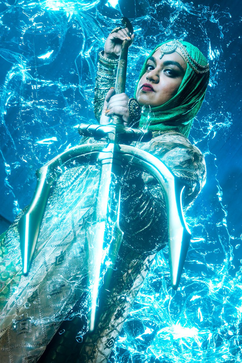 Don't mess with me, I *will* stab you 🔱 #hijab #cosplay #Aquaman #JusticeLeague #SnydersCut #SnyderCutJusticeLeague #helalipop #nycc (photo and edit by Michael Largé)