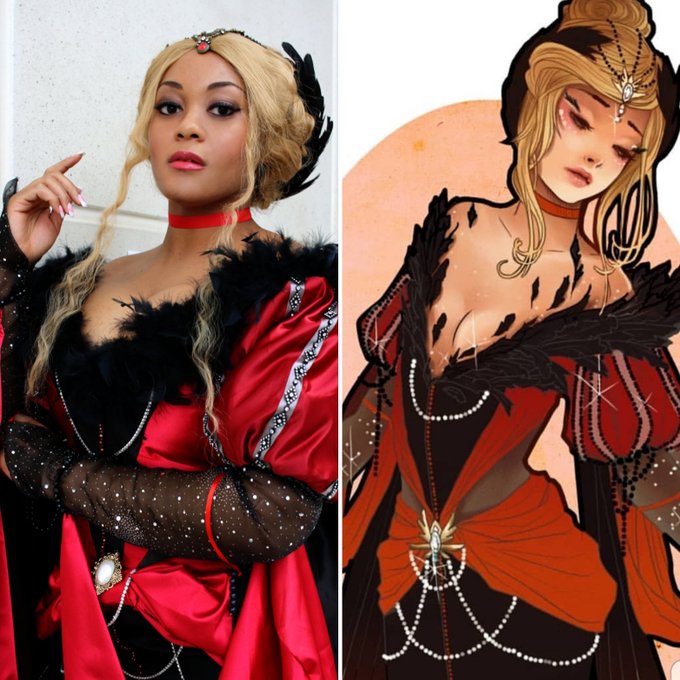 One of my favorite dresses I've made so far, Black Swan Odile, based on @HannahArtwork 's design. . #fashion #illustration #cosplay #blackswan #blackcosplayerhere