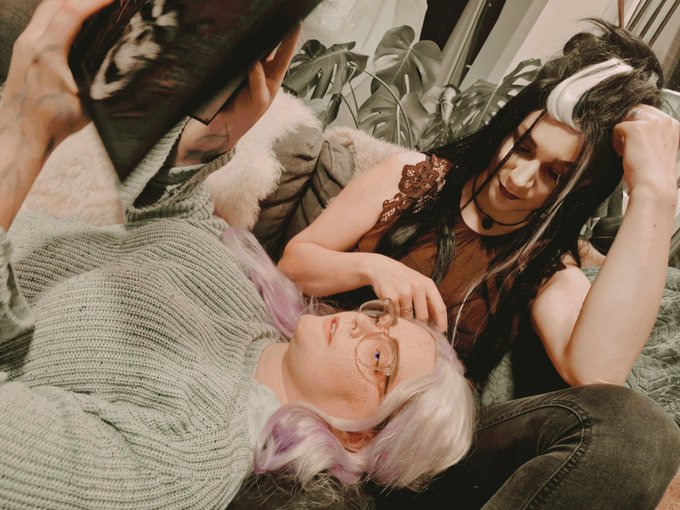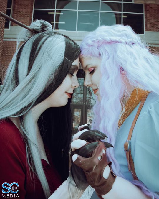 A quiet moment between lovers 💜🖤 Laudna is @LizzyisDM and belongs to @Marisha_Ray Imogen belongs to @LauraBaileyVO Taken by @BeardoirP #CriticalRole #CriticalRoleCosplay #imodna #BellsHells