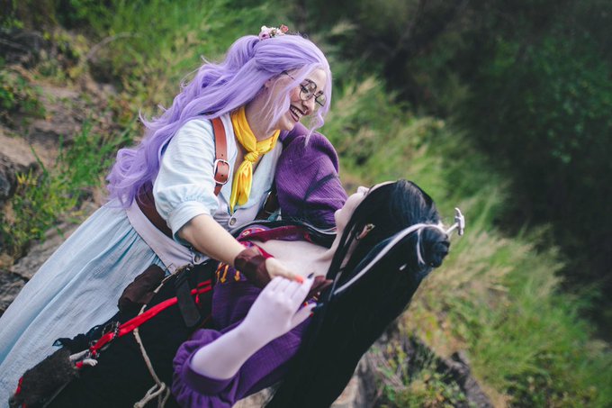 A quiet moment between lovers 💜🖤 Laudna is @LizzyisDM and belongs to @Marisha_Ray Imogen belongs to @LauraBaileyVO Taken by @BeardoirP #CriticalRole #CriticalRoleCosplay #imodna #BellsHells