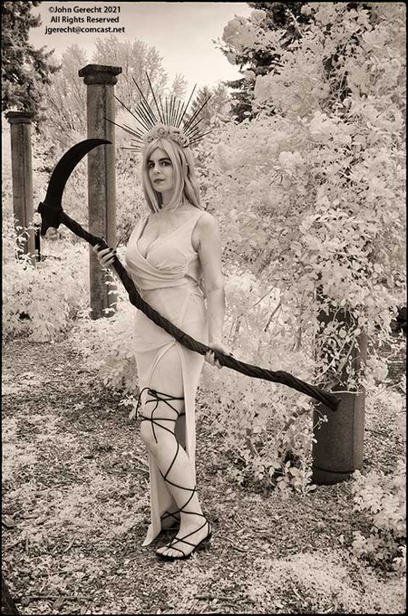 Photographed at the SeaTac Botanical Garden at a Cosplay shoot. I used my Nikon Z6 adapted for B/W Infrared by LifePixel and Nikon 24-70mm lens. #CopyrightJohnGerecht #AllRightsReserved #CosPlay #InfraRed #LifePixel #monochrome #Sepia #BW
