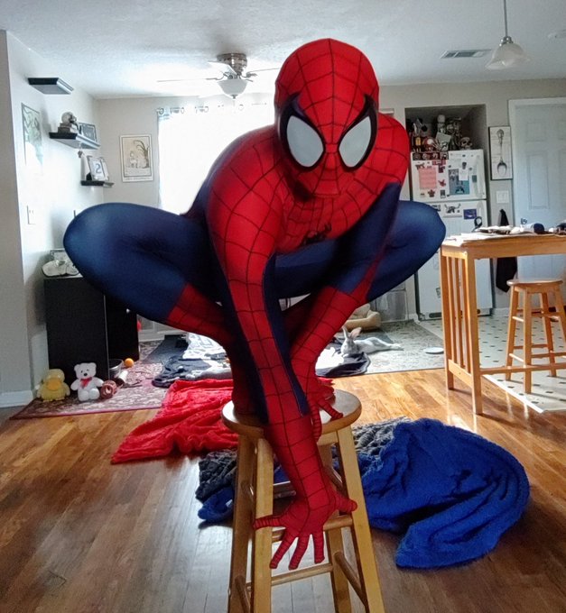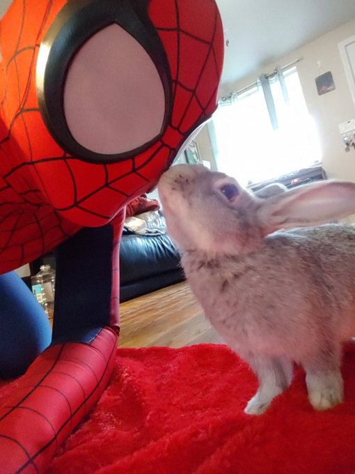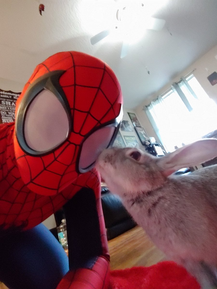 The little guy approves of his poppa being Spidey. #SpiderMan #Spidey #cosplay #cosplayer #cosplayersofinstagram #bunny #rabbit #bunnies #rabbits #cute #StayHome #Isolation