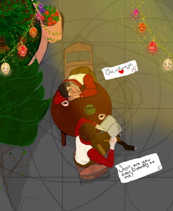 I wish I could write a proper dialogue:") However~ I've had this conversation about Ximena making both Jayce and Viktor sweaters and Viktor's is too big cos Ximena usually Knits for Jayce and yeah Cx #Arcane #arcanefanart #jayvik