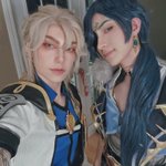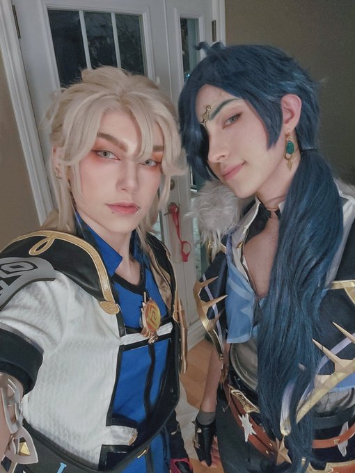 Happy valentine's day 💝 Half of the cosplay music video is assembled, I'm obsessed with it. omg it's just TOO GOOD 😳 My Kaeya is the amazing and talented @allthepotsnpans #kaebedo #kaeya #albedo #kaeyacosplay #albedocosplay #cosplayer