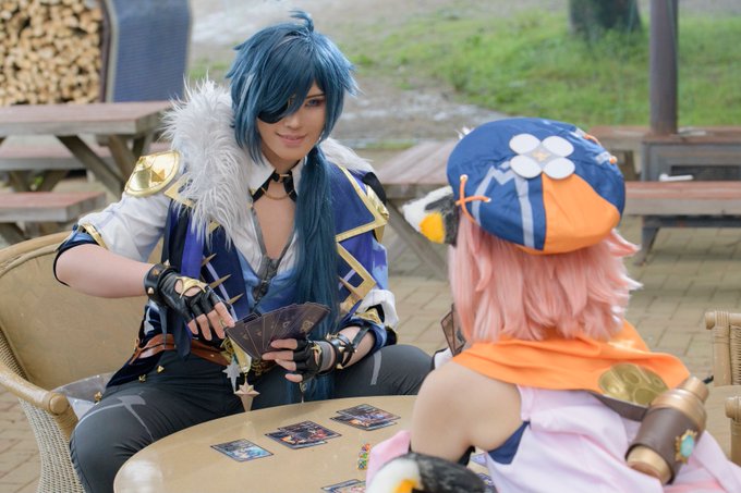 cosplay ✦ 🦉🦚  ̄ ̄ ̄ ̄ ̄ ̄ ̄ ̄ ̄ ̄ ̄ ̄ ̄ 強制送還 _____________ ディルック( #Diluc) コータ ガイア( #kaeya)イツル 📷 #スタジオロムリエンド