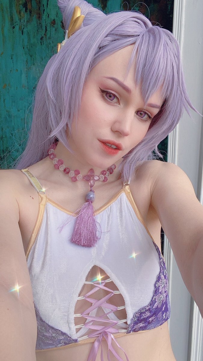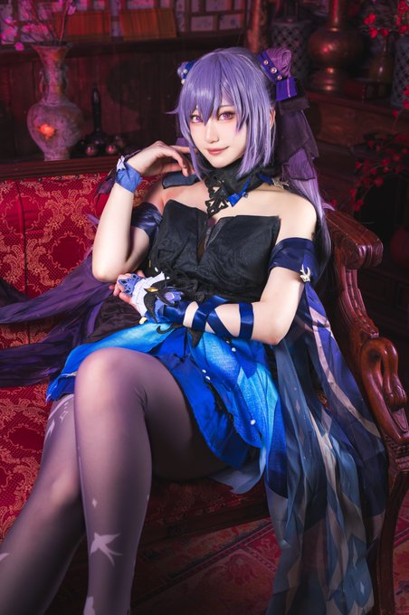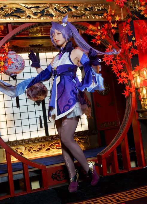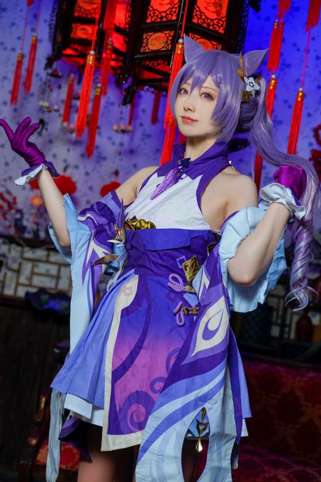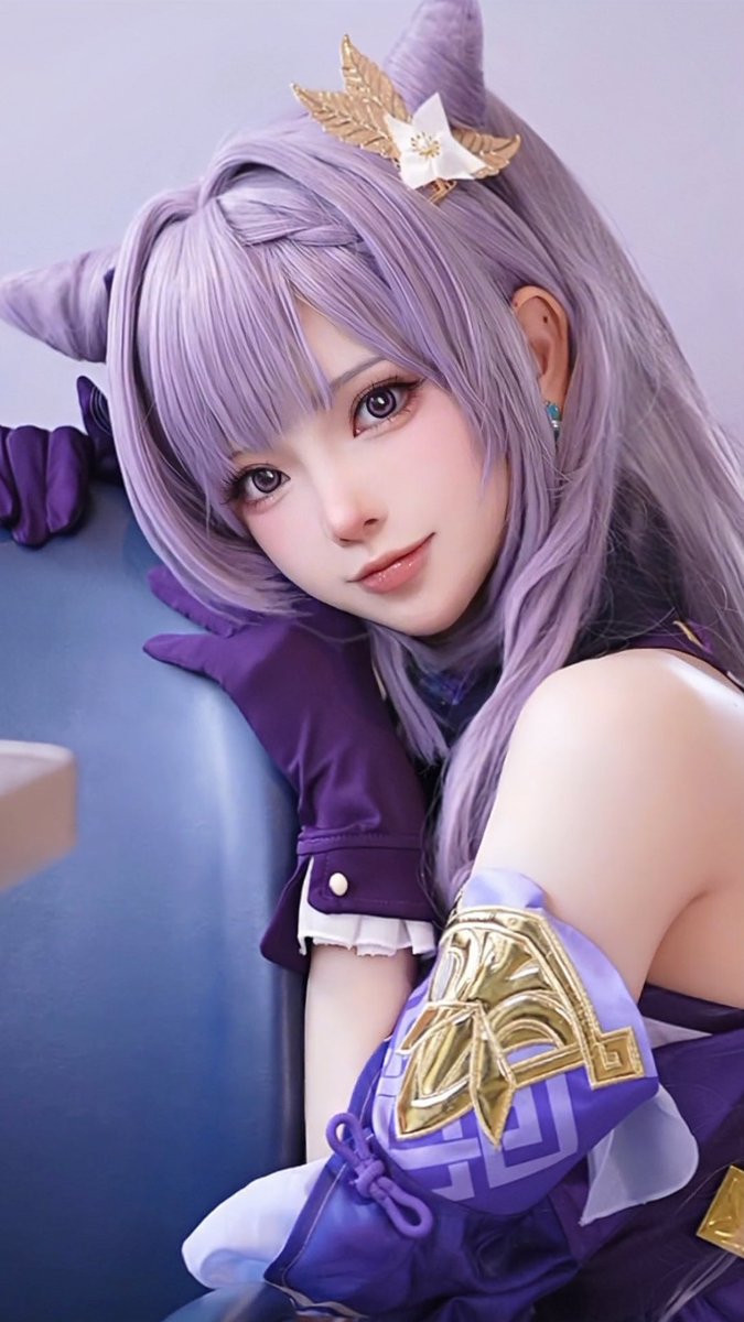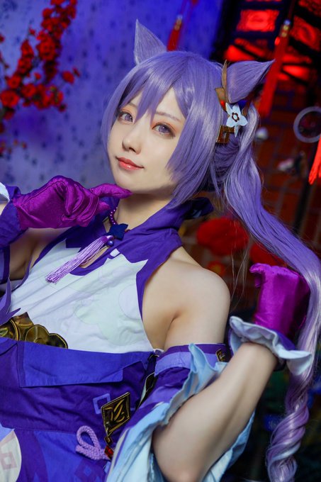 I just found my Keqing selfie from 2021 (the left one) and decided to compare the wigstyle and makeup with my current 2022 version 👀💜 #Keqing #Genshinlmpact