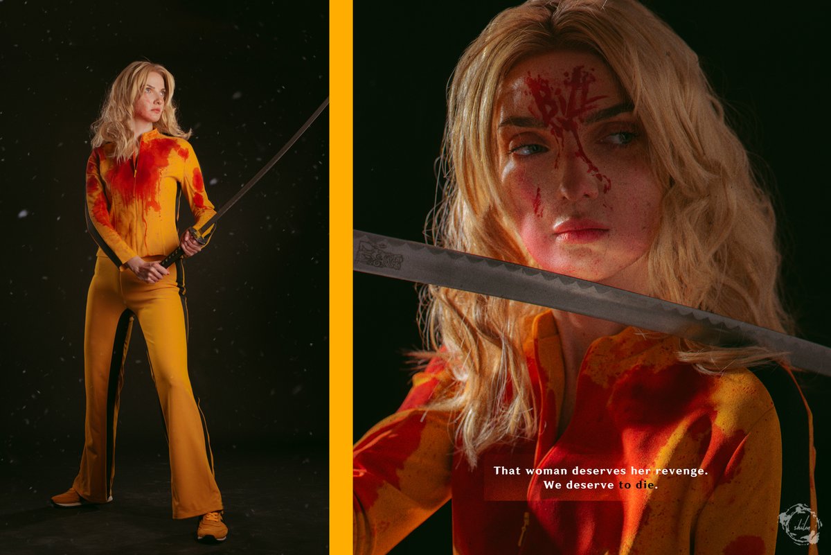 Инста похоже всё) думаю, буду дублировать и сюда, так как мне очень нравится этот сет 💛🖤💛 Kill Bill - Beatrix Kiddo (The Bride) Ph: @photoshilen Md/wig:me #killbill #kill_bill #cosplay #bride #kiddo #beatrix #косплей #black_Mamba #russian_cosplay #cosplayrussia