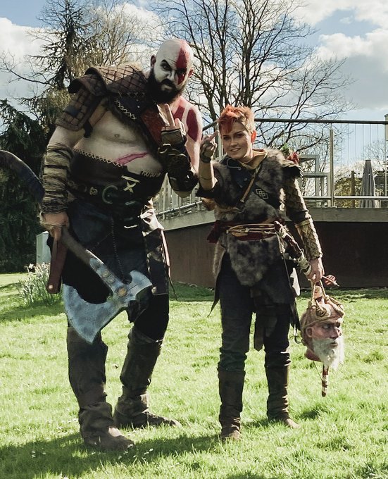 So so excited to be wearing Kratos and Atreus this weekend at @CosXpo with @baldsasquatch72 again for the first time since the #GodofWarRagnarök launch party 🥹🩵 gonna be a lot of fun and great to be in the boys again! #GodOfWar #atreus #kratos #gamingcosplay