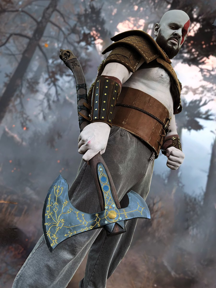 Slight delay on Making Kratos episode 2. Hang on. Just got to hit it with Leviathan! #GodofWarRagnarok #Kratos #cosplay