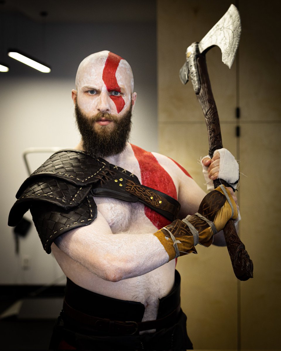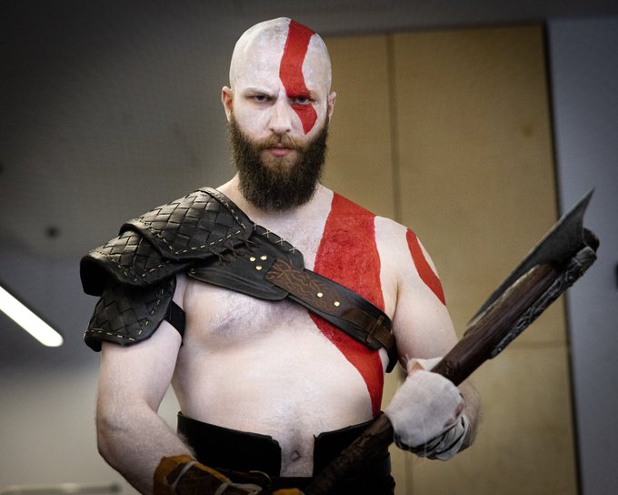 Happy halloween everyone! Hoping to win the costume contest at @FikaProductions this year! @SonySantaMonica I hope I am worthy of Kratos ;) @corybarlog thanks for creating such an inspiring character! #GodofWarRagnarok #cosplay #Kratos