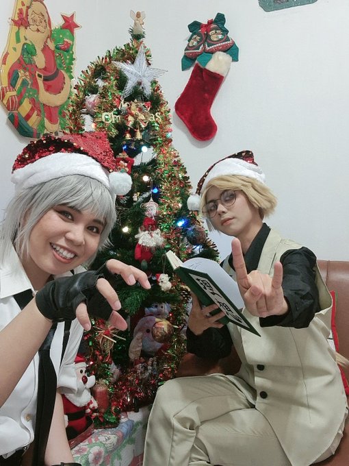 HAVE A HOLY JOLY CHRISTMAS FROM ATSUSHI AND KUNIKIDA ✨❤🎄 #cosplay #cosplayindonesia #bungoustraydogs #kunikidadoppo #atsushinakajima #cosplayers #animecosplay #cosplays