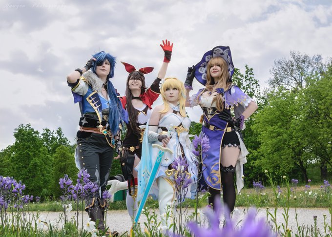 ` Mondstadt. A city of freedom that lies in the northeast of Teyvat. _____________________________ Lumine, Kaeya, Amber & Lisa [Genshin Impact] Photo made by Yuugen Photography #GenshinImpact #GenshinImapct #cosplay #traveler #lumine #amber #lisa #kaeya #genshincosplay #mondstadt