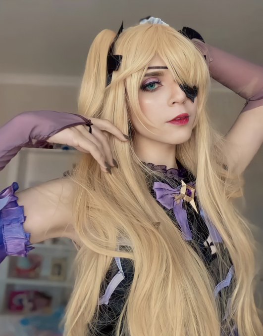 FISCHL <3 <3 cosplay: @dokidokicostume lentes: @mysticeyesofficial cupom "kitcatty" #fischl #fischlcosplay #fischlcosplayer #fischlgenshinimpact #fischlgenshin #genshinimpact #genshincosplay #genshinimpactcosplay #kitcattycosplay #makeup #makeupartist #cosplay