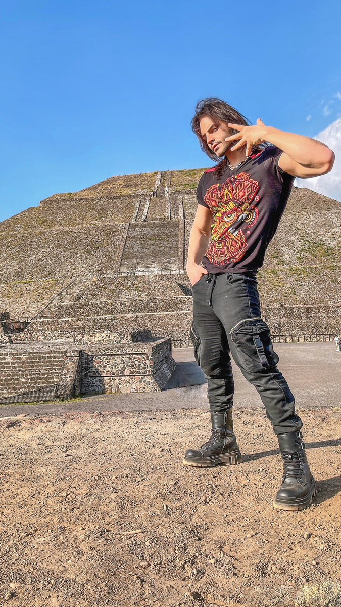 Menacing in front of the pyramid of the Sun in Teotihuacan ✨✨❤️❤️ Did I find find any demonic stone mask that could turn me into a vampire..? You'll find out soon #jojo #mexico #Teotihuacan