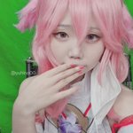 Am i so sweet as this cute pink donut? 🤭 Wanna see more Miko maid pictures? Link here 👇 #miko #yaemikocosplay #yaemikoedit #genshinimpactcosplay
