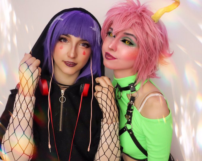 おは〜✨ #芦戸三奈 @TeriChickiPizza #耳郎響香 @Layla_Rainbow_5 #mha #mhacosplay #bnha #bnhacosplay #jiroukyouka #minaashido #jirou #mina #ヒロアカ #僕のヒーローアカデミア #コスプレ #宅コス