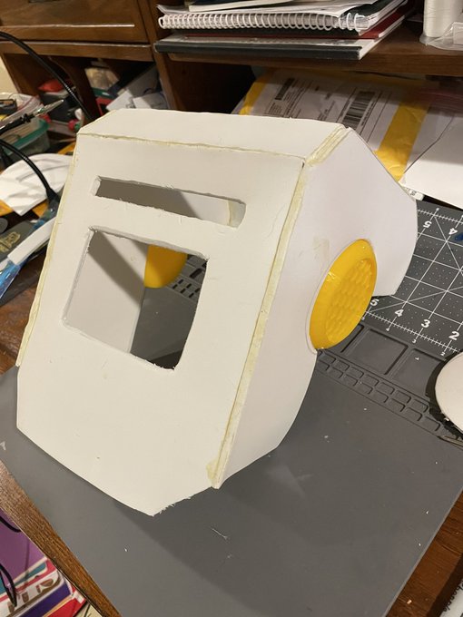 I had a day to lie low today, so I finally modeled the head out of EVA foam and glued it together. I added the 3D printed ears. I will paint this part before putting it over the cardboard frame that has the screen in it. #momo #straygame #cosplay