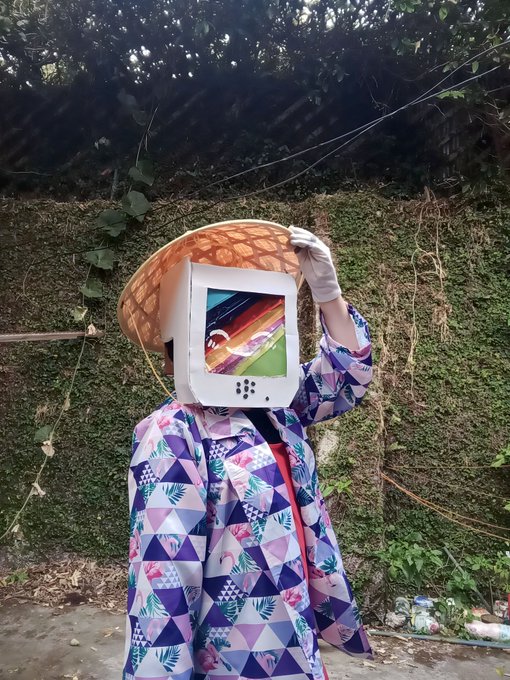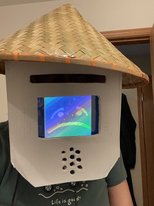 I glued some Velcro inside the head to hold the screen, and yay!!! It looks so good! The face is small but overall the head just needs a few more details and it’s done!! I’m so excited. #momo #straygame #cosplay