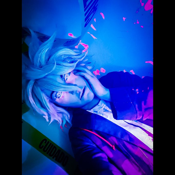 This may be hands down my favorite Nagito shoot. I did it all myself courtesy of a black light, UV paint, and my shower 😂 #Nagitokomaeda #sdr2 #danganronpa #cosplay