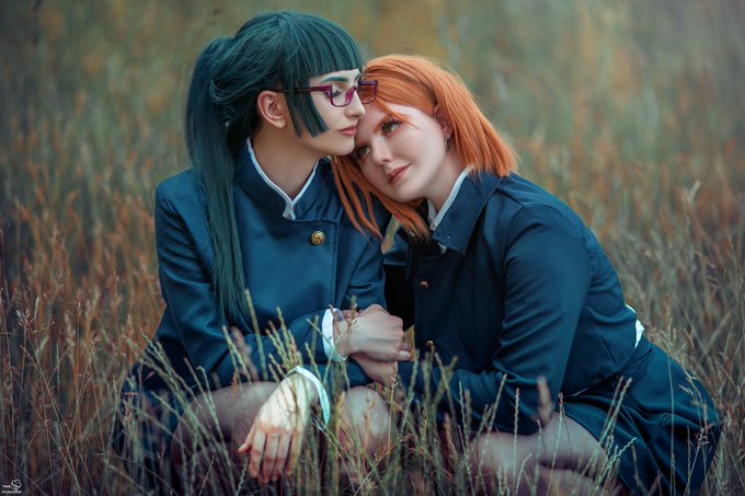 Just two great friends nothing more to see here 😩 @BognaMarciniak as Maki Zenin @Karasuwu as Nobara Kugisaki Thank u for shooting @ThePuddinsCos #JujutsuKaisen #cosplay #nobarakugisaki #makizenin #nobamaki #girlcosplay