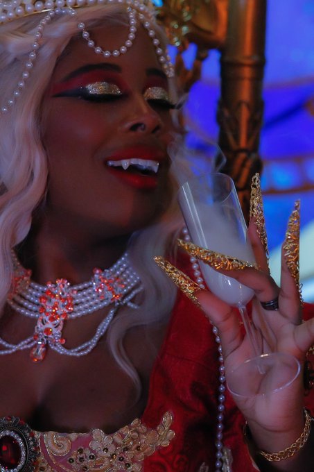 Drink it in~ Day 6 of #28daysofblackcosplay goes to my OC Aurelie Lèonore Boudreaux #cosplay #vampire #originalcharacter